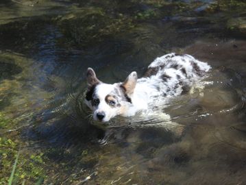 Clown Face loves swimming in the creek, taking long lonely walks thru the forest and cuddles! She is one of the sweetest corgis ever to people and can be a sass monster to her corgi pals. She loved playing ball and winter time is her fave! Clown face is out of our very own Lily who was also born with us and Doffey aka the King!